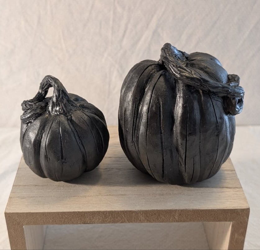 handmade black ceramic pumpkins with a patina finish